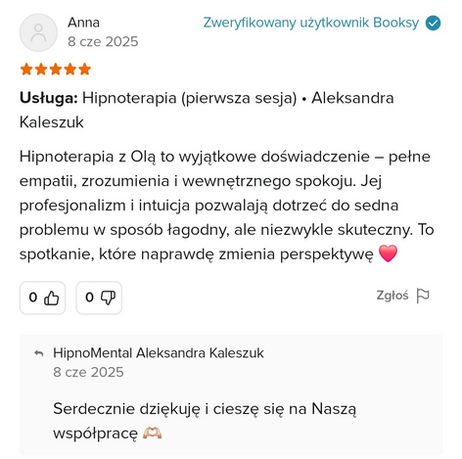 Podczas pierwszego spotkania porozmawiamy o Twoich potrzebach, celach i historii. Sesja hipnoterapii przebiega w spokojnej, bezpiecznej atmosferze — prowadzę Cię krok po kroku, a Ty przez cały czas masz pełną świadomość i kontakt ze mną.To forma pracy, w której to Ty masz kontrolę. A ja jestem tylko Twoim przewodnikiem.